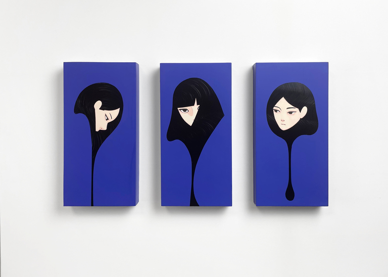 1997年生。宮崎県小林市出身。2020年大分芸短ビジュアルデザインコース修了。現在福岡を拠点に作家活動中。 山中智郎は精神の美しさをミニマリズム的な視点で追求する。 伝統工芸から引用した手法と現代的なマスキング技法を組み合わせて、人の生まれ持つ流動的な美を表現した『麗髪』シリーズをメインに制作している。